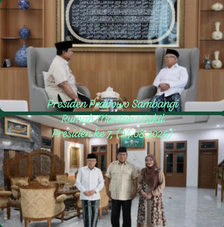 Siasatnusantara.com – Depok, Jawa Barat || Presiden Republik Indonesia, Prabowo Subianto, melakukan kunjungan silaturahmi ke kediaman Wakil Presiden ke-13 RI, K.H. Ma’ruf Amin, pada Minggu sore, 24 Agustus 2025.