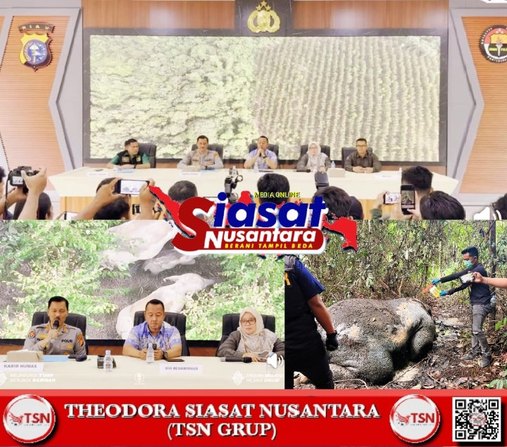 Pekanbaru, siasatnusantara.com – Polda Riau mengadakan konferensi pers terkait penemuan bangkai gajah di Media Center Polda Riau. Bangkai gajah tersebut ditemukan pada Senin, 2 Februari 2026, di Blok C99 areal izin konsesi PT. RAPP Desa Lubuk Kembang Bunga Kec. Ukui Kab. Pelalawan. Jum’at (6/02/2026).