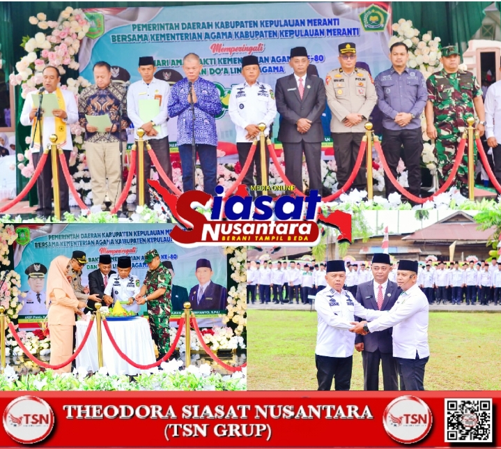 Selatpanjang-Riau, siasatnusantara.com – Bupati Kabupaten Kepulauan Meranti, AKBP (Purn) H. Asmar, memimpin Upacara Peringatan Hari Amal Bakti (HAB) ke-80 Kementerian Agama Republik Indonesia Tahun 2026 yang dirangkaikan dengan doa bersama lintas agama. Kegiatan tersebut berlangsung di halaman Kantor Kementerian Agama Kabupaten Kepulauan Meranti, Kamis (8/01/2026).