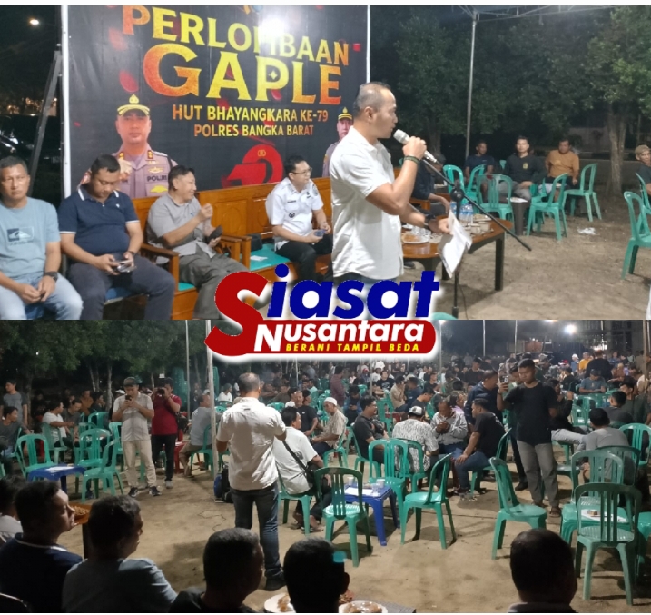 Bangka Barat, siasatnisantara.com – Dalam rangka menyambut Hari Bhayangkara ke-79, Polres Bangka Barat menggelar Open Turnamen Gaple yang dilaksanakan di halaman Kafe Saye, Kecamatan Mentok. Kegiatan ini resmi dibuka pada Rabu malam dan diikuti oleh 205 tim dari berbagai kalangan masyarakat Kecamatan. Kamis (12/06/2025).