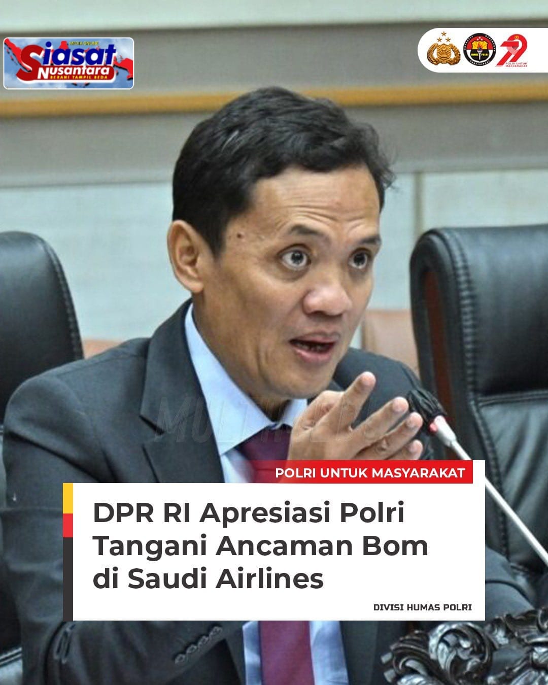 DPR RI Apresiasi Respons Cepat Polri dalam Kasus Ancaman Bom Pesawat Saudi Airlines