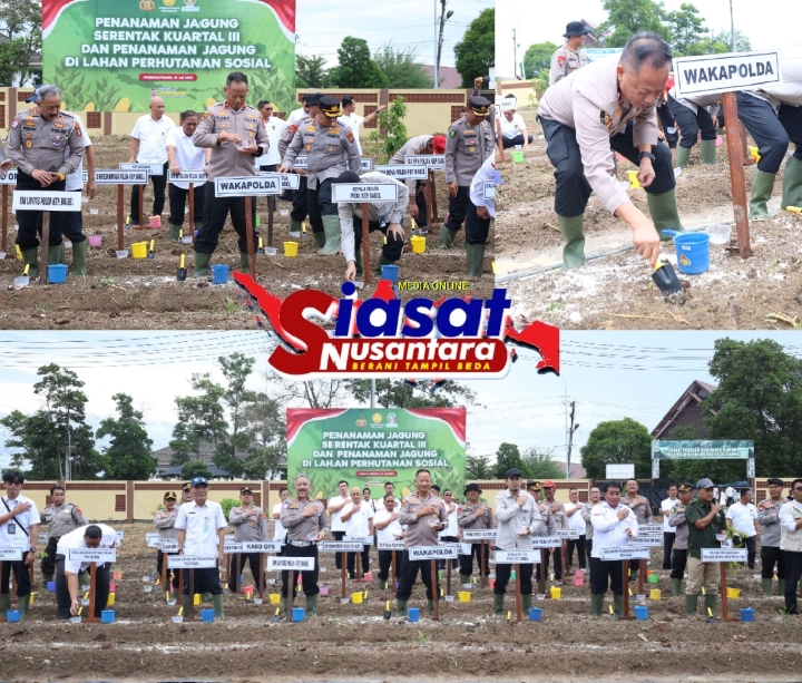 Bangka Belitung, siasatnusantara.com – Polda Bangka Belitung menggelar penanaman jagung serentak kuartal III dilahan ketahanan pangan yang berada di kawasan Bhaypark Polda, Rabu (9/7/25) siang.