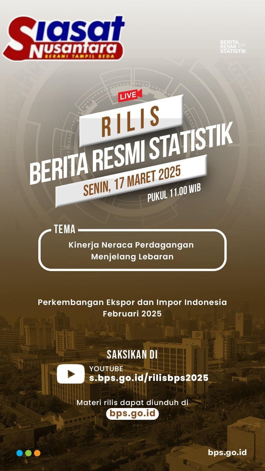 Siasatnusantara.com – Jakarta || Kepala Badan Pusat Statistik (BPS), Amalia Adininggar Widyasanti merilis Perkembangan Ekspor dan Impor Februari 2025 di Kantor BPS hari ini (17/3).