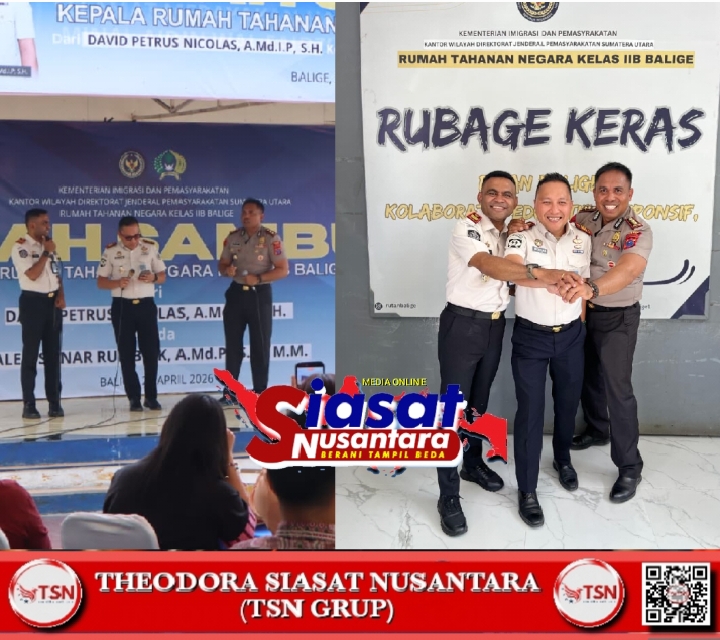Toba, Siasatnusantara.com – Suasana haru sekaligus penuh keakraban mewarnai acara pisah sambut Kepala Rumah Tahanan Negara (Karutan) Kelas II B Balige dari David Petrus Nicolas Kepada Karutan Baru Valen Sonar Rumbiak yang dihadiri langsung oleh Kapolres Toba AKBP V.J Parapaga S.I.K., sebagai bentuk sinergitas antar aparat penegak hukum di wilayah Kabupaten Toba, Sabtu (25/04/26).