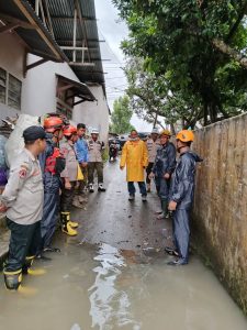 Teks Foto : Plt.Kalaksa BPBD Binjai R.I.Baroes,ST bersama Satgas Bencana berada di lokasi terdampak banjir.