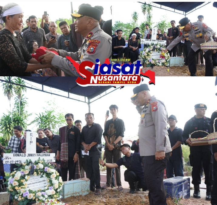 Pekanbaru, siasatnusantara.com – Jenazah Iptu (Anm) Donald Junus Halomoan, personel Brimob Polda Riau yang gugur saat memadamkan kebakaran hutan dan lahan (Karhutla) di Rokan Hilir (Rohil) dimakamkan sore ini. Pemakaman digelar dengan upacara kedinasan.