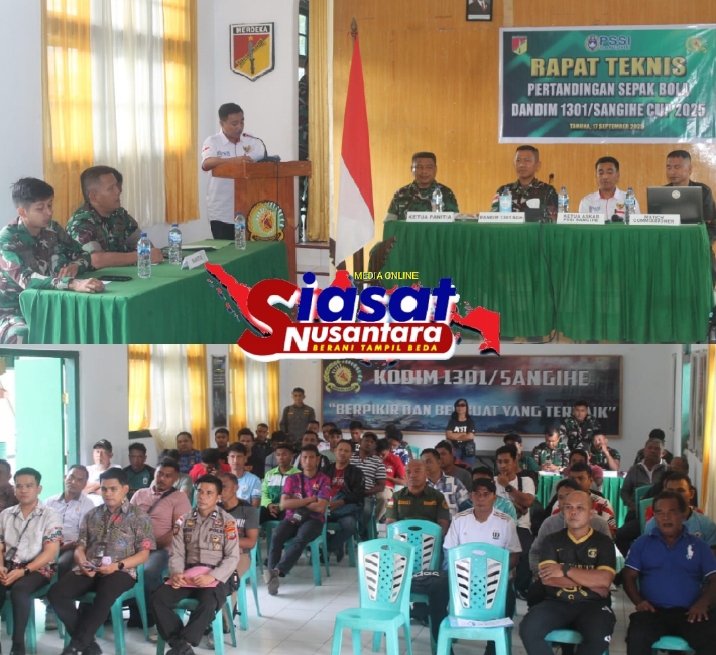 Sangihe, siasatnusantara.com – Semangat sportifitas mewarnai techical meeting turnamen sepakbola Dandim Cup, yang bertempat di Aula Kodim 1301/Sangihe. Rabu (17/09/2025).