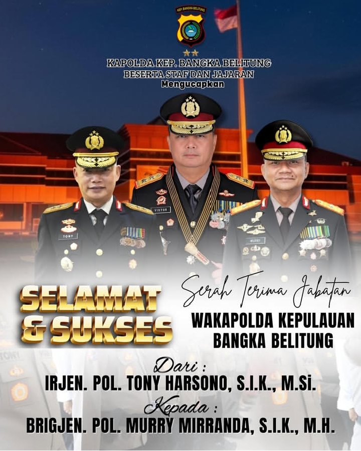 Bangka Belitung, siasatnusnatara.com – Kepolisian Daerah (Polda) Kepulauan Bangka Belitung resmi melaksanakan serah terima jabatan Wakil Kepala Polda (Wakapolda) dari Irjen Pol Tony Harsono kepada Brigjen Pol Murry Mirranda, Senin (12/1/2026).