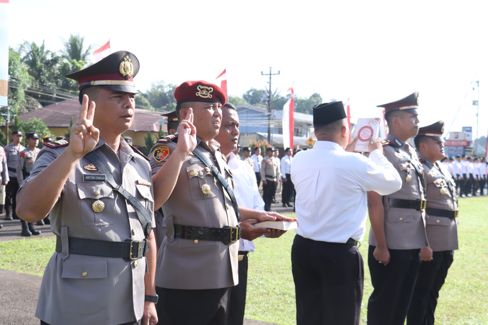 Upacara dipimpin langsung oleh Kapolres Belitung AKBP Sarwo Edi Wibowo, S.I.K. dan diikuti oleh Pejabat Utama (PJU), perwira, para Kapolsek jajaran, personel Polres Belitung, serta ASN Polres Belitung.