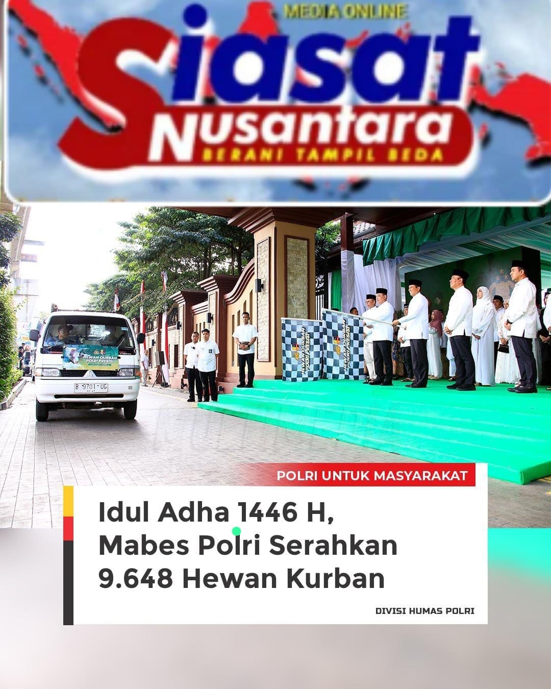 Siasatnusantara.com – Jakarta, 6 Juni 2025 – Kapolri, Jenderal Polisi Drs. Listyo Sigit Prabowo, (tautan tidak tersedia), secara simbolis menyerahkan 9.648 hewan kurban dari jajaran Mabes Polri pada momen Idul Adha 1446 Hijriah.