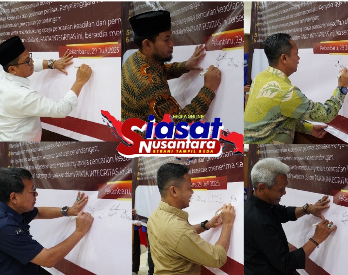 Acara dilanjutkan dengan pembacaan Pakta Integritas Pencegahan dan Penanganan Kekerasan Seksual yang kemudian ditandatangani oleh Ketua, anggota dan Sekretariat KPU Provinsi Riau. Pakta integritas ini juga akan ditandatangani oleh seluruh pejabat struktural dan staf Sekretariat KPU Provinsi Riau.
