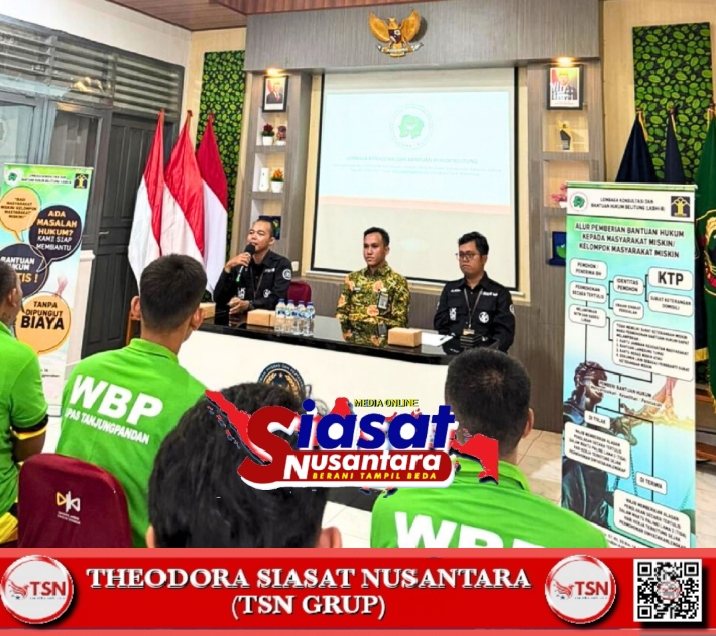 Belitung, siasatnusantara.com – Sebanyak 30 Warga Binaan Lembaga Pemasyarakatan (Lapas) Kelas IIB Tanjungpandan dibekali sosialisasi Undang-Undang RI Nomor 16 Tahun 2011 tentang Bantuan Hukum, Jumat (13/2). Kegiatan yang bekerja sama dengan Lembaga Konsultasi dan Bantuan Hukum Belitung tersebut berjalan interaktif dan penuh antusiasme.