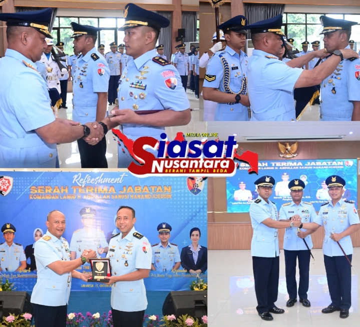 Belitung, siasatnusantara.com – Tongkat estafet kepemimpinan di Lanud H. Abdullah Sanusi Hanandjoeddin (Lanud H.AS Hanandjoeddin) resmi berganti. Upacara Serah Terima Jabatan (Sertijab) Komandan Lanud H.AS Hanandjoeddin dipimpin langsung oleh Panglima Komando Daerah Udara (Pangkodau) I Marsekal Muda TNI Muzafar, S.Sos., M.M., bertempat di Gedung Roesmin Nurjadin, Jakarta, Selasa (15/10/2025).