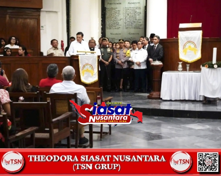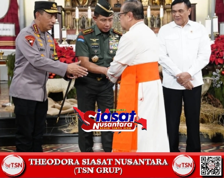 Jakarta, siasatnusantara.com – Panglima TNI Jenderal TNI Agus Subiyanto mendampingi Menteri Koordinator Bidang Politik dan Keamanan (Menko Polkam) Djamari Chaniago bersama Menteri Koordinator Pembangunan Manusia dan Kebudayaan Pratikno, Menteri Dalam Negeri Tito Karnavian, Kapolri Jenderal Polisi Listyo Sigit Prabowo, serta Gubernur DKI Jakarta Pramono Anung melaksanakan pengecekan kesiapan dan pengamanan di Gereja Katedral dan Gereja Immanuel, Jakarta Pusat, menjelang perayaan Natal 2025, Rabu (24/12/2025).