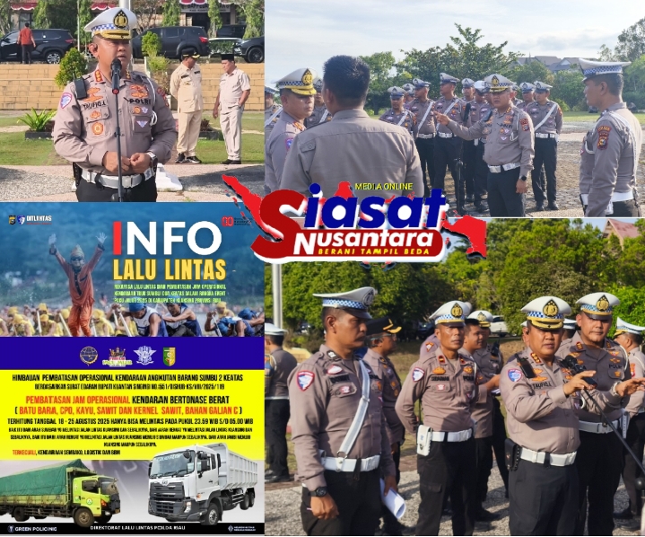 Pekanbaru, Siasatnusantara.com – Dalam rangka mendukung kelancaran perhelatan Festival Pacu Jalur 2025 di Kabupaten Kuantan Singingi (Kuansing), seluruh pengemudi angkutan barang dengan sumbu dua ke atas diimbau untuk mematuhi aturan pembatasan jam operasional yang telah ditetapkan, Senin (18/8/2025).