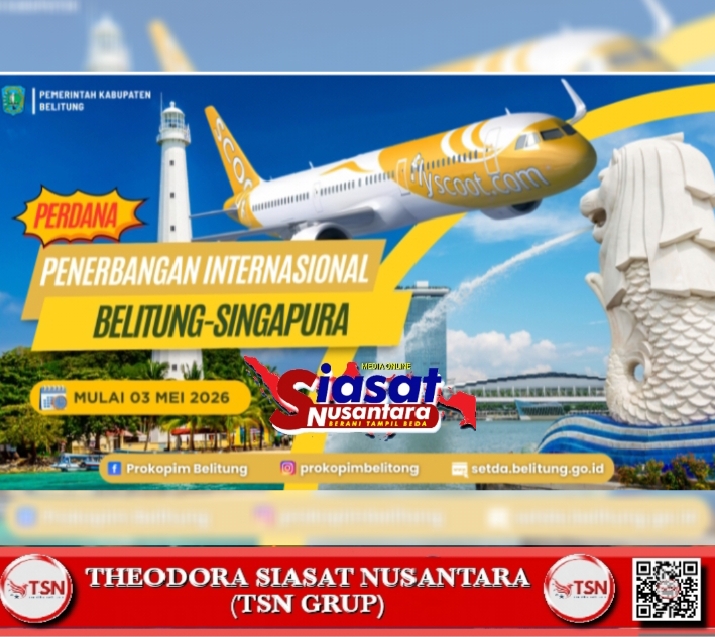 Belitung, siasatnusantara.com – Pemerintah Kabupaten Belitung memastikan kesiapan menyambut penerbangan internasional perdana maskapai Scoot Airline dengan rute Singapura ke Belitung (Tanjung Pandan) yang dijadwalkan mulai beroperasi pada 3 Mei 2026 mendatang. Penerbangan ini akan beroperasi rutin dua kali seminggu, yakni; setiap hari Rabu dan Minggu.
