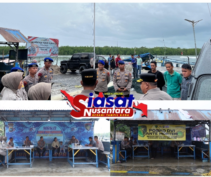 Belitung, siasatnusantara.com – Menindaklanjuti peristiwa kecelakaan laut yang menimpa Kapal Motor (KM) Osela di Perairan Karang Mardalena, Utara Pulau Gelasa, Kabupaten Bangka Tengah, Polres Belitung mendirikan Posko Perbantuan Informasi di Mako Sat Polairud Polres Belitung. Selasa (19/08/2025)