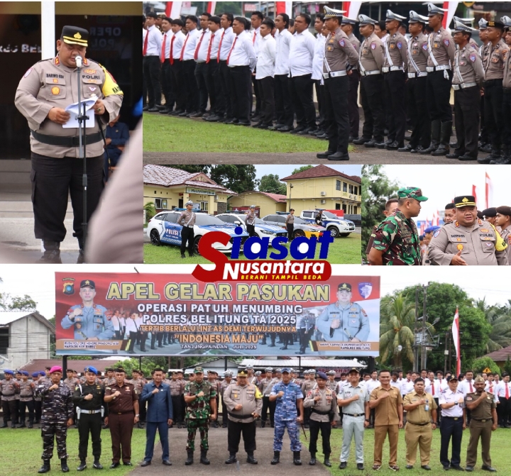 kepatuhan masyarakat terhadap peraturan lalu lintas, Polres Belitung melaksanakan Apel Gelar Pasukan Operasi Patuh Menumbing 2025 di Lapangan Mapolres Belitung, Senin (14/07/2025).
