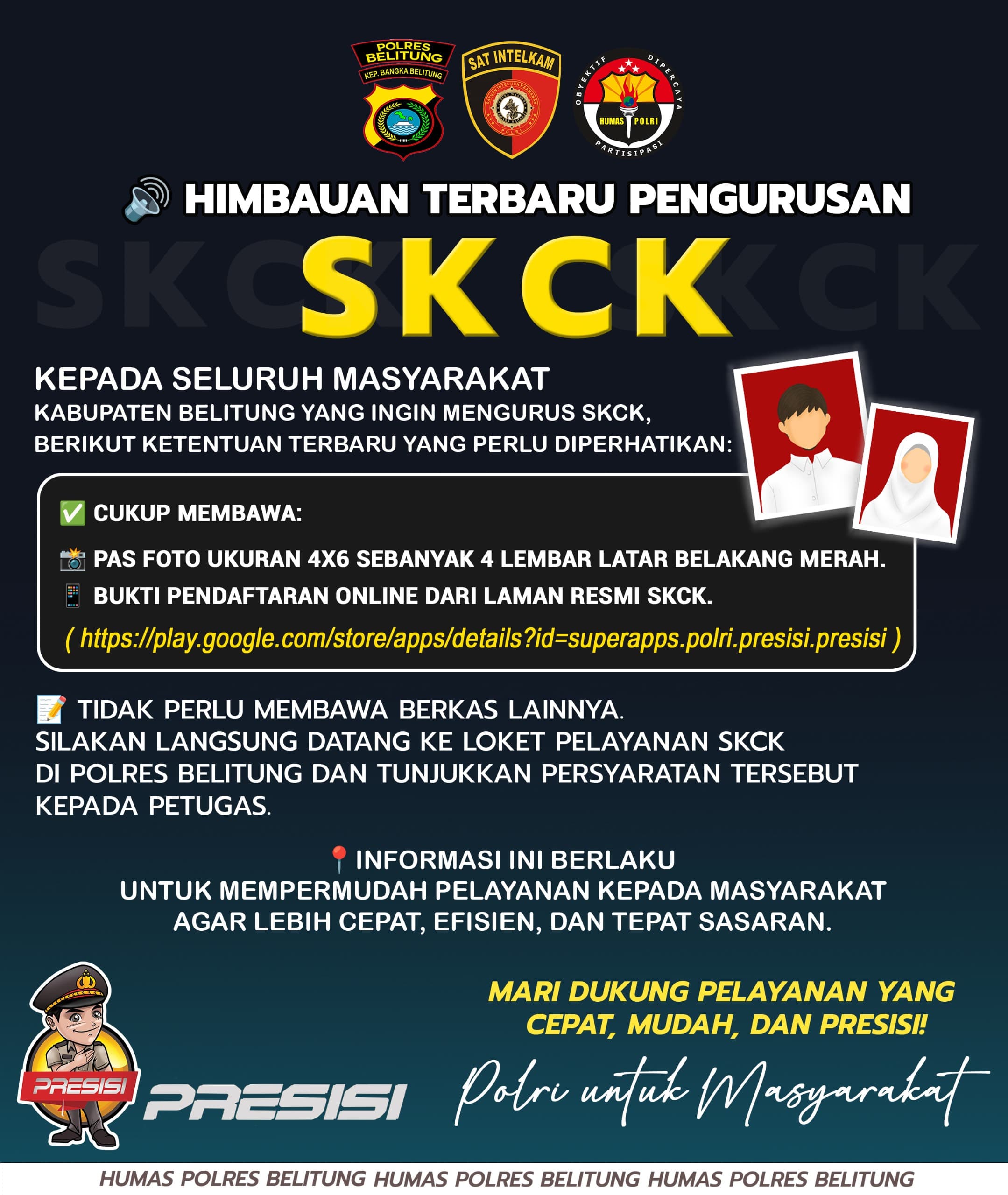 Dalam himbauan yang disampaikan, masyarakat Kabupaten Belitung yang ingin mengurus SKCK kini cukup membawa dua syarat utama, yaitu: