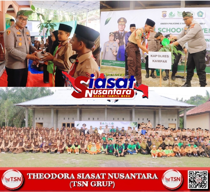 Tapung-Riau, siasatnusantara.com – Polres Kampar bekerja sama dengan Persatuan Hijau Riau (PHR) dan Yayasan Madrasah Aliah Al-Muhajirin menggelar sosialisasi Green Policing dan Green Movement, serta penanaman pohon di Desa Pancuran Gading, Tapung, Kamis (29/01/2026).