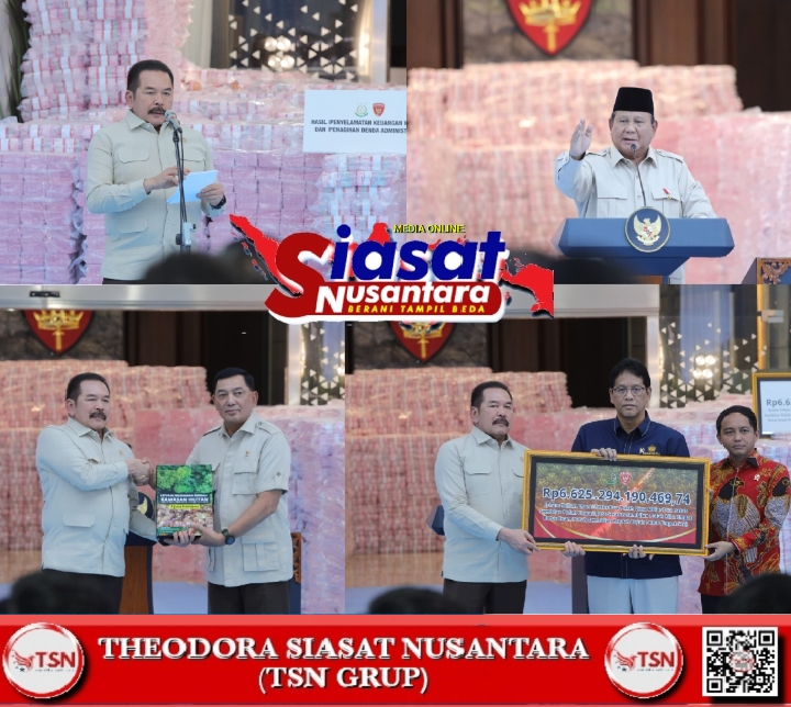 Jakarta, siasatnusantara.com – Bertempat di Gedung Bundar Kejaksaan Agung, telah dilaksanakan penyerahan hasil penguasaan kembali kawasan hutan tahap V dengan total luas 893.002,38 Ha, penyerahan uang hasil penagihan denda administratif senilai Rp2.344.965.750.000. Kegiatan ini disaksikan langsung oleh Presiden RI Prabowo Subianto. Rabu, (24/12/2025).