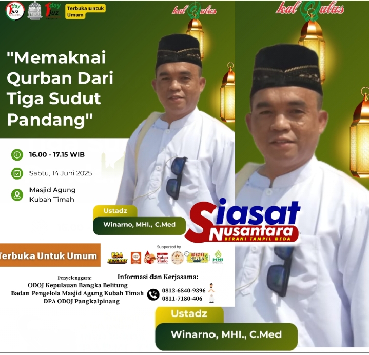 Pangkalpinang, siasatnusantara.com – Aroma harum Idul Adha masih terasa, namun semangat berbagi dan refleksi terus digelorakan.