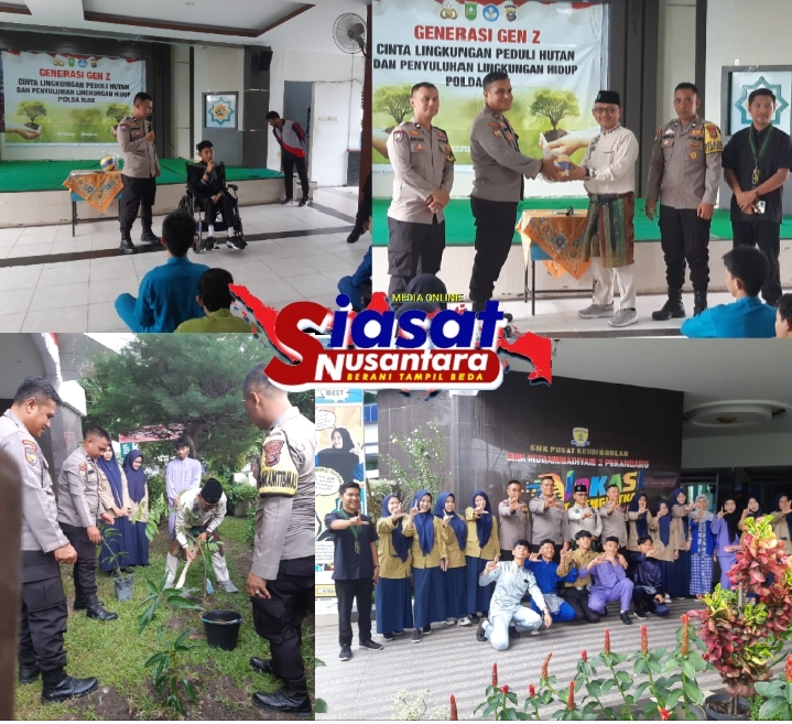 Polda Riau bersama dengan Pergerakan Mahasiswa Islam Indonesia (PMII) Cipayung melakukan sosialisasi Green Policing di SMK Muhammadiyah 2 Pekanbaru. Kegiatan ini bertujuan untuk meningkatkan kesadaran lingkungan dan pentingnya menjaga kebersihan di kalangan siswa, Kamis (7/8/2025).