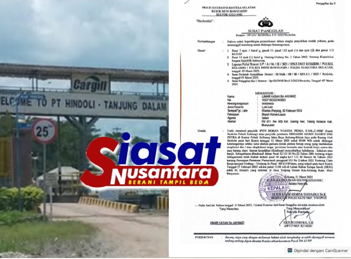 Musi Banyuasin, siasatnusantara.com – Dugaan aktivitas pengeboran sumur minyak ilegal kembali mencuat di Kabupaten Musi Banyuasin. Polsek Keluang secara resmi memanggil seorang warga bernama Umar Hasan Bin Akhmad untuk dimintai keterangan sebagai saksi dalam kasus yang mengarah pada tindak pidana eksplorasi dan eksploitasi tanpa izin di wilayah Desa Tanjung Dalam, Kecamatan Keluang.
