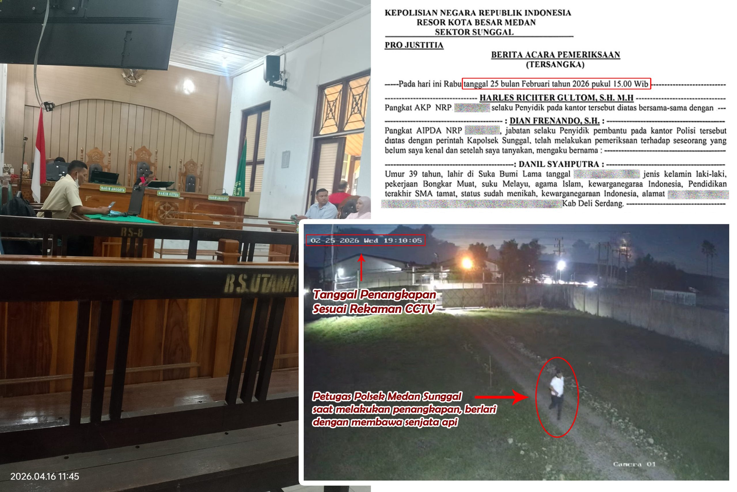 Pasalnya, dalam BAP tersebut, pihak Polsek Medan Sunggal melakukan pemeriksaan terhadap Danil Syahputra pada tanggal 25 Februari 2026, pukul 15.00 WIB. Sedangkan baik Danil Syahputra dan Muchtar ditangkap pada tanggal 25 Februari 2026, pukul 19.30 WIB.