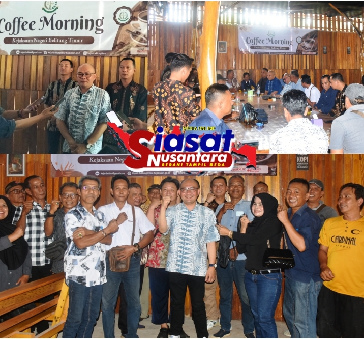 Beltim, siasatnusantara.com – Kepala Kejaksaan Negeri Belitung Timur, Agus Taufikurrahaman kumpul-kumpul dengan puluhan wartawan Kabupaten Beltim, pada acara silaturahmi ‘Coffe Morning’ bersama Insan Per Warung Kopi Aput Kecamatan Manggar, Juma’at (21/11/25) Pagi.