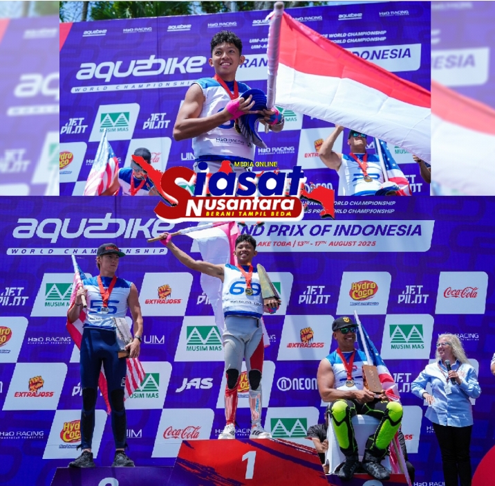 Balige, siasatnusantara.com – Indonesia kembali mencatatkan sejarah di panggung olahraga dunia. Boanerges Ratag, remaja berusia 16 tahun asal Papua Barat, resmi dinobatkan sebagai Juara Dunia pada ajang APB-UIM Endurance World Championship Grand Prix of Indonesia pada Jumat (15/8), di Danau Toba.