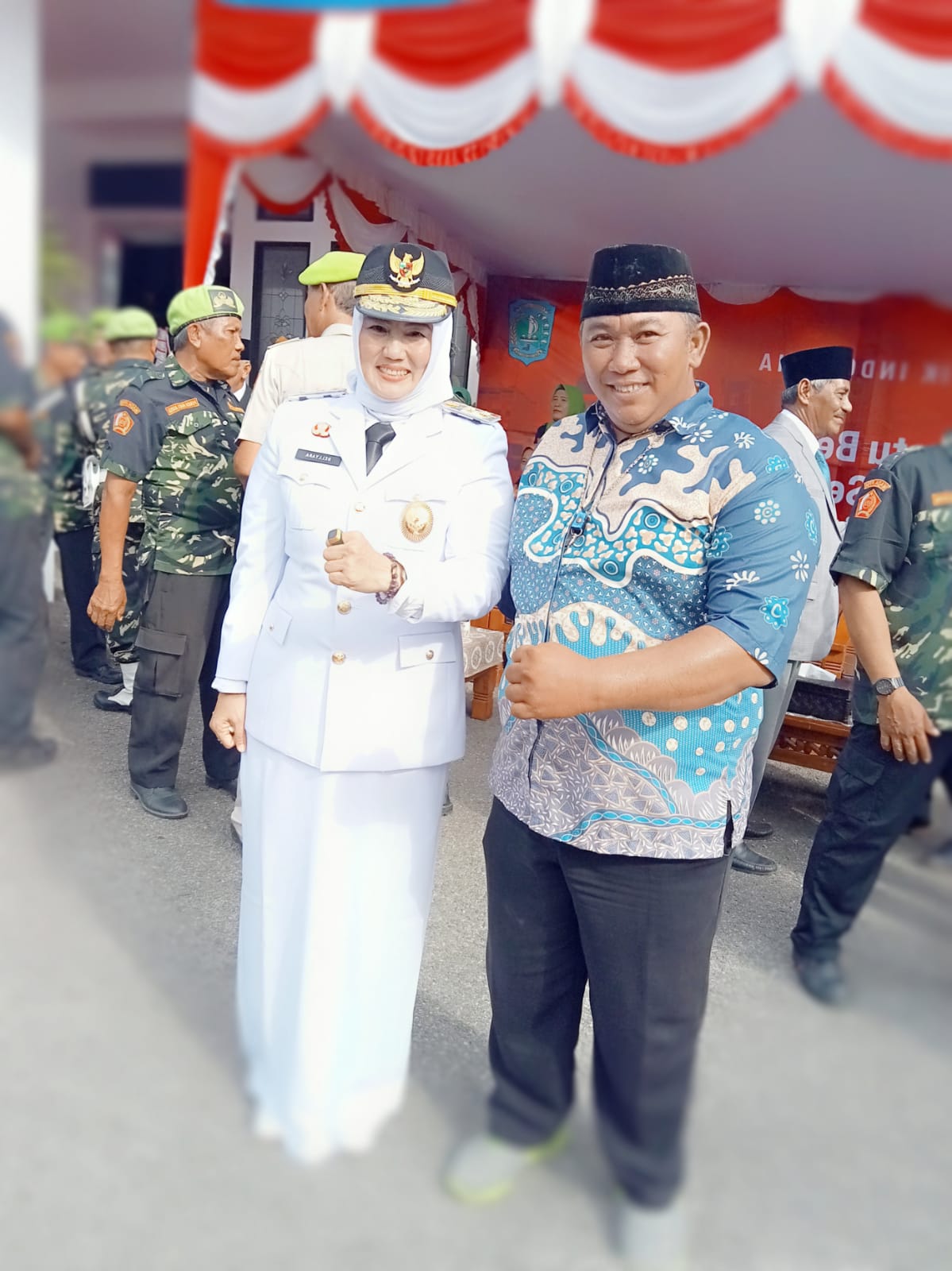 ‎Kaperwil Babel Luise P.H Bersama Wagub Babel Hellyana mengikuti upacara pengibaran bendera Merah Putih HUT ke-80 RI di kantor Bupati Belitung