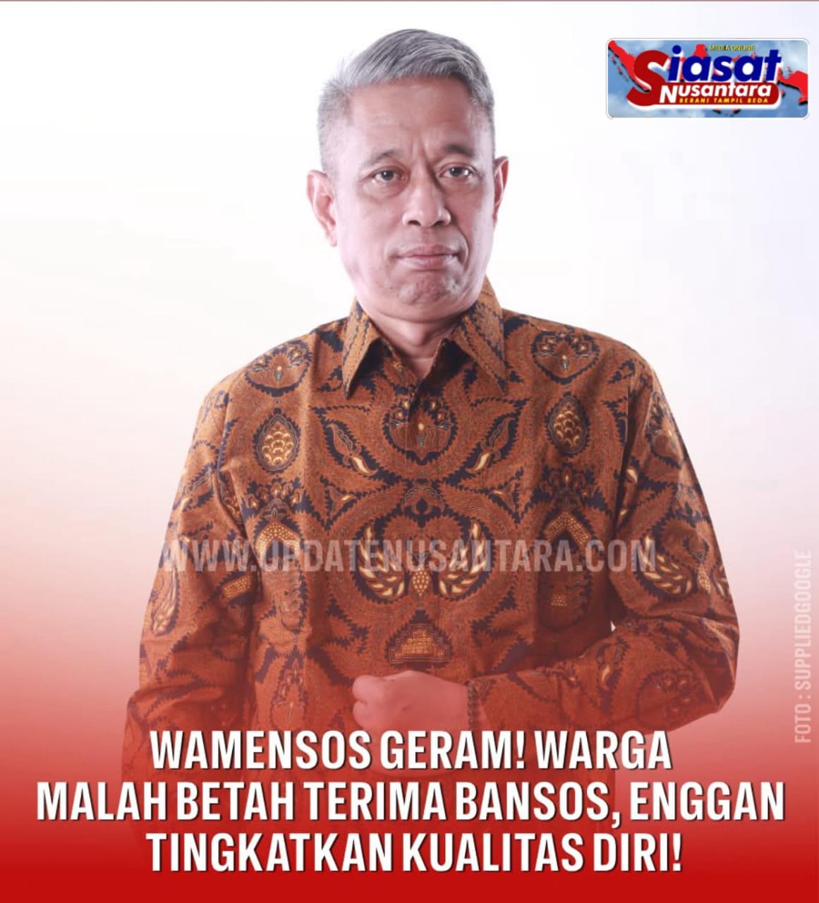 Siasatnusantara.com – Jakarta, 24 Mei 2025 — Wakil Menteri Sosial (Wamensos) Agus Jabo Priyono menyatakan salah satu tantangan utama pemerintah dalam penyaluran bantuan sosial (bansos) adalah masih adanya warga yang merasa terlalu nyaman sebagai penerima sehingga enggan meningkatkan kualitas diri.