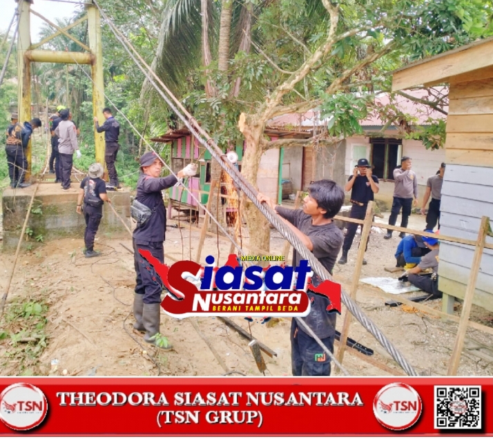Kondisi jembatan yang sebelumnya mulai rapuh dan bergoyang kini perlahan berganti wajah. Tim dari Polda Riau dan Polres Kuansing bersama tenaga ahli bekerja dengan penuh ketelitian, memastikan setiap jengkal lantai jembatan dan kekuatan sling baja mampu menopang beban masa depan warga dengan lebih aman.